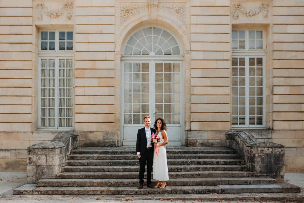 Pour immortaliser leur mariage à la mairie, Valentin et Isabela ont choisi de faire appel à un photographe de mariage à Bordeaux, et ils ont eu raison ! Il arrive parfois que les futurs-mariés privilégient les grandes cérémonies pour investir dans un reportage photographique. Pourtant, il serait dommage de ne pas garder le souvenir de cette journée grâce à de beaux clichés réalisés par un photographe professionnel. Photographe à Bordeaux et amoureuse de cette ville, c’est avec joie que j’ai accepté la proposition de ce joli couple franco-brésilien. Nous avons alors réfléchi à une prestation sur mesure afin de leur offrir des photos uniques de cette journée. Au programme, mariage civil à la mairie de Bordeaux, photo de groupe dans les Jardins de la mairie, photo de couple dans ce fabuleux décor urbain bordelais, cocktail et soirée !